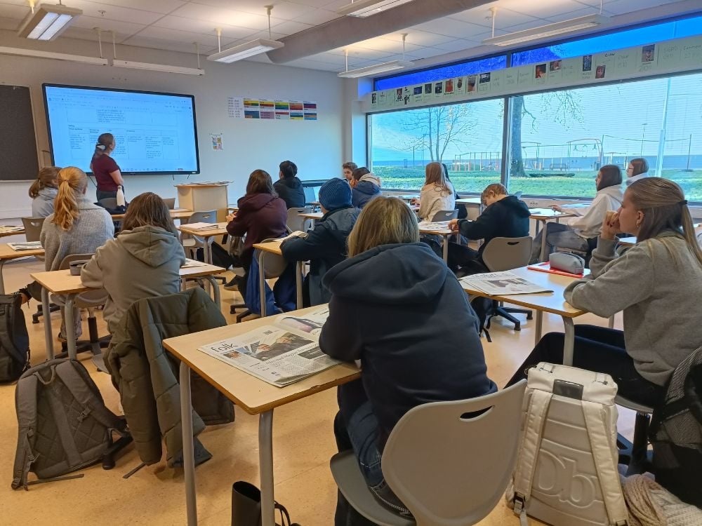 Gunn Britt Vindspoll Myklebust underviser også i norsk, og fortel at nasjonale avisveker har vore ei kjekk og lærerik veke for både elevar og lærarar: