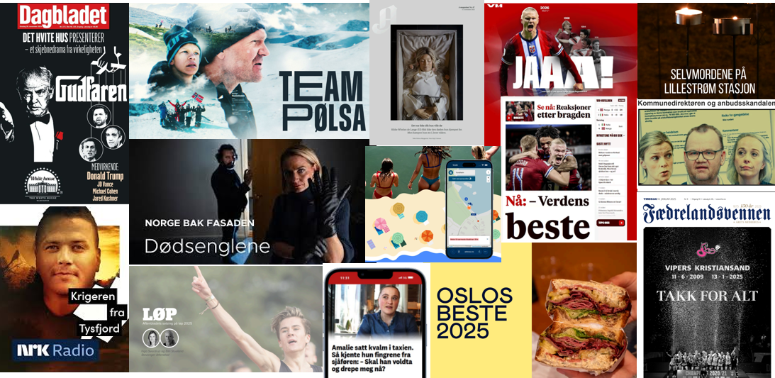 Aftenposten, Romerikes Blad, VG, Adresseavisen og TV 2 kjemper alle om å bli Årets Mediehus. Prisene deles ut 6. mai på Frescohallen i Bergen. Totalt 54 prosjekter er nominert til årets priser.
