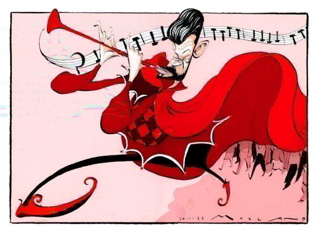 Marvin Halleraker for satiretegningen av Per Sandberg. Tegningen stod på trykk i Aftenposten 18. august 2018.