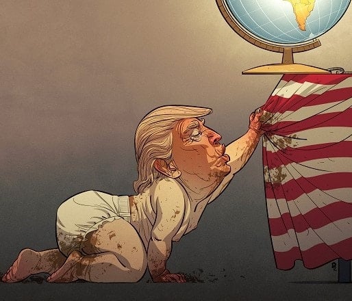 Årets tegning gir oss en særdeles spisset versjon av hvordan USAs nye president fremstår på sitt mest uerfarne og selvopptatte. Noen vil mene at tegningen av Trump er vulgær, på grensen til det usmakelige. Men tegnerens oppgave er å provosere, å sette på spissen. Vi kan godt føle ubehag – fordi verden tidvis er ubehagelig. Svært ubehagelig.